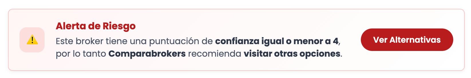 Si un broker obtiene una puntuación de 4 o menos en Confianza, se le aplica automáticamente una advertencia de riesgo.